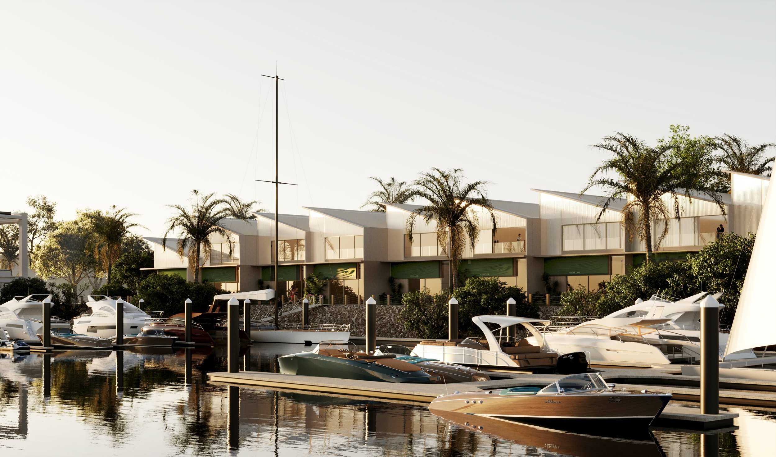 The waterfront precinct features 67 design-led workstores and over 70+ private berths, supported by an EV marine hub, on-site fuel, and 24/7 shipmaster services – all just 15 minutes from the Port of Brisbane and CBD.